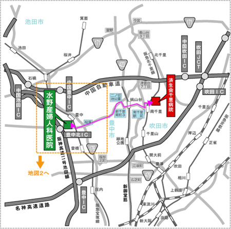 阪急豊中駅から水野産婦人科までの道のりをご案内します。各ポイントでの写真をご用意いたしましたので、ご不安な方はご確認ください。